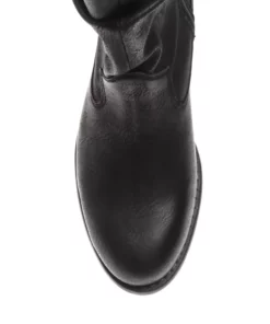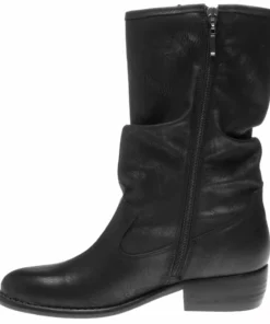 Enjoy fashion with a conscience with this cowboy-styled black mid-calf ruched boot. Beautifully finished with subtle branding details. Free of animal products and is PETA approved and is made in a vegan-certified factory.