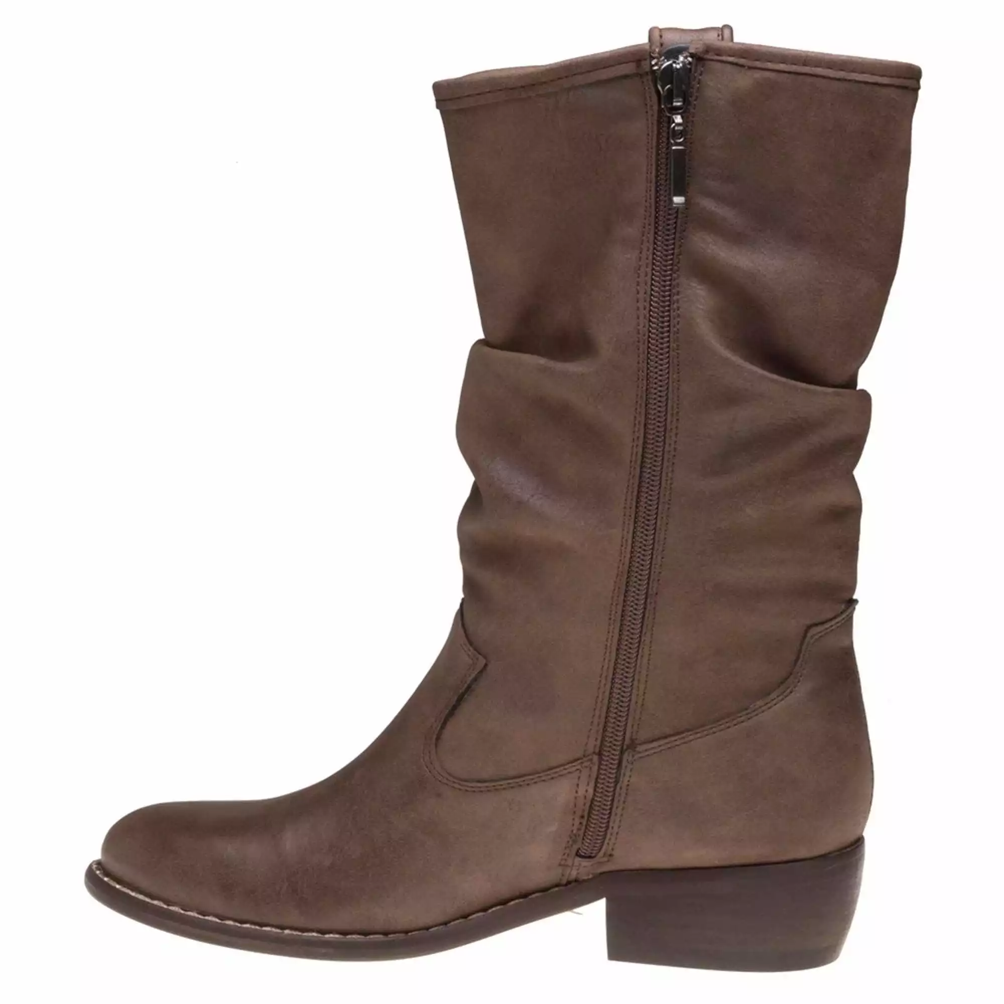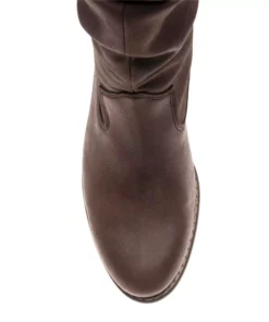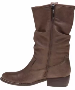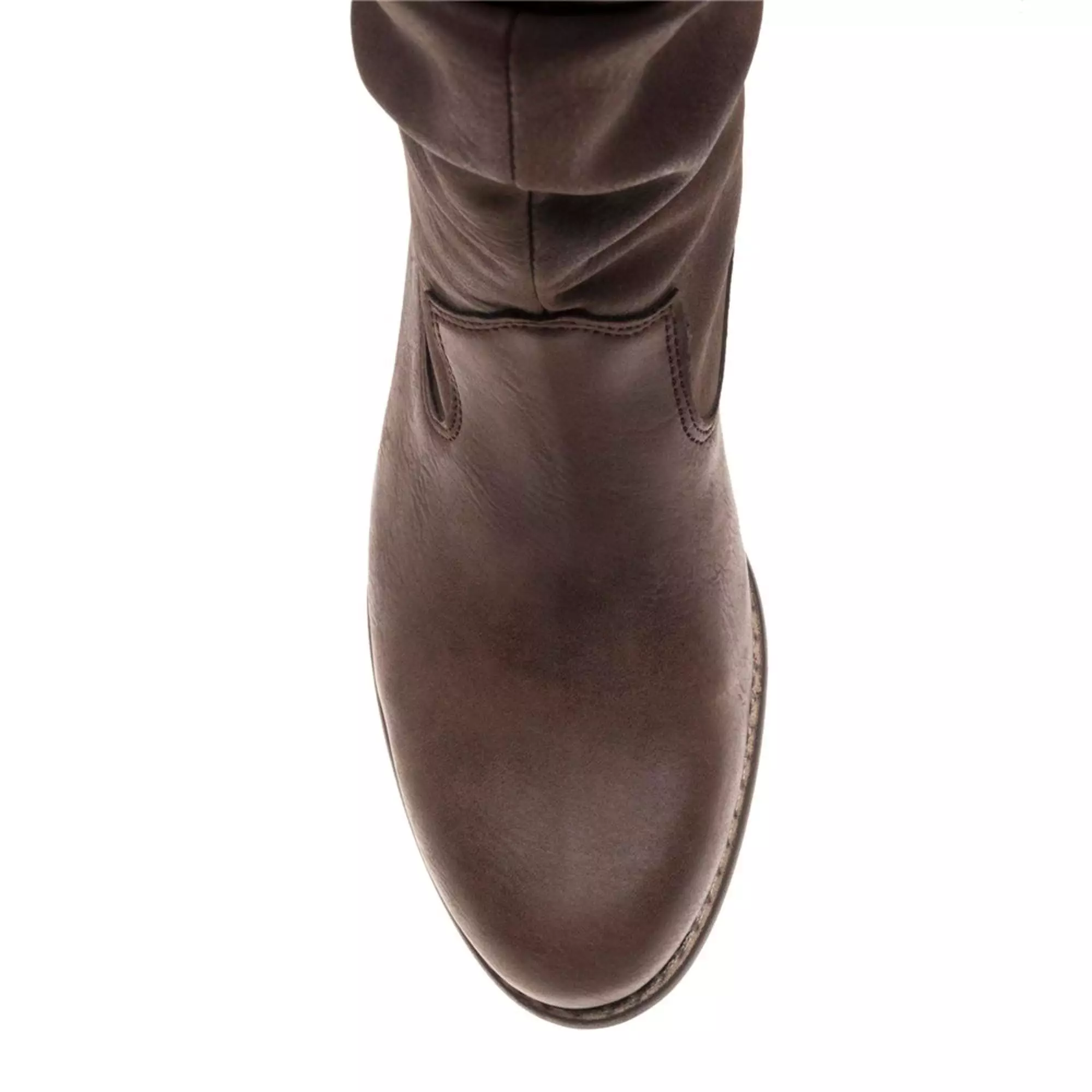 Enjoy fashion with a conscience with this cowboy-styled brown mid-calf ruched boot. Beautifully finished with subtle branding details. Free of animal products and is PETA approved and is made in a vegan-certified factory.