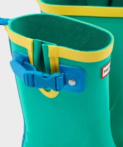 Take the fun of the wild wherever you go with this bright blue Kids Rain boot. With colorful and fun contrasting details, your little one won’t want to take this vibrant boot off. Perfect for puddle splashing, each boot is handcrafted from natural rubber. A flat sole and rounded toe gives little feet room to move and with the added safety of reflective patches and the Hunter Original tread you can let your little explorers take on the elements whatever the weather.