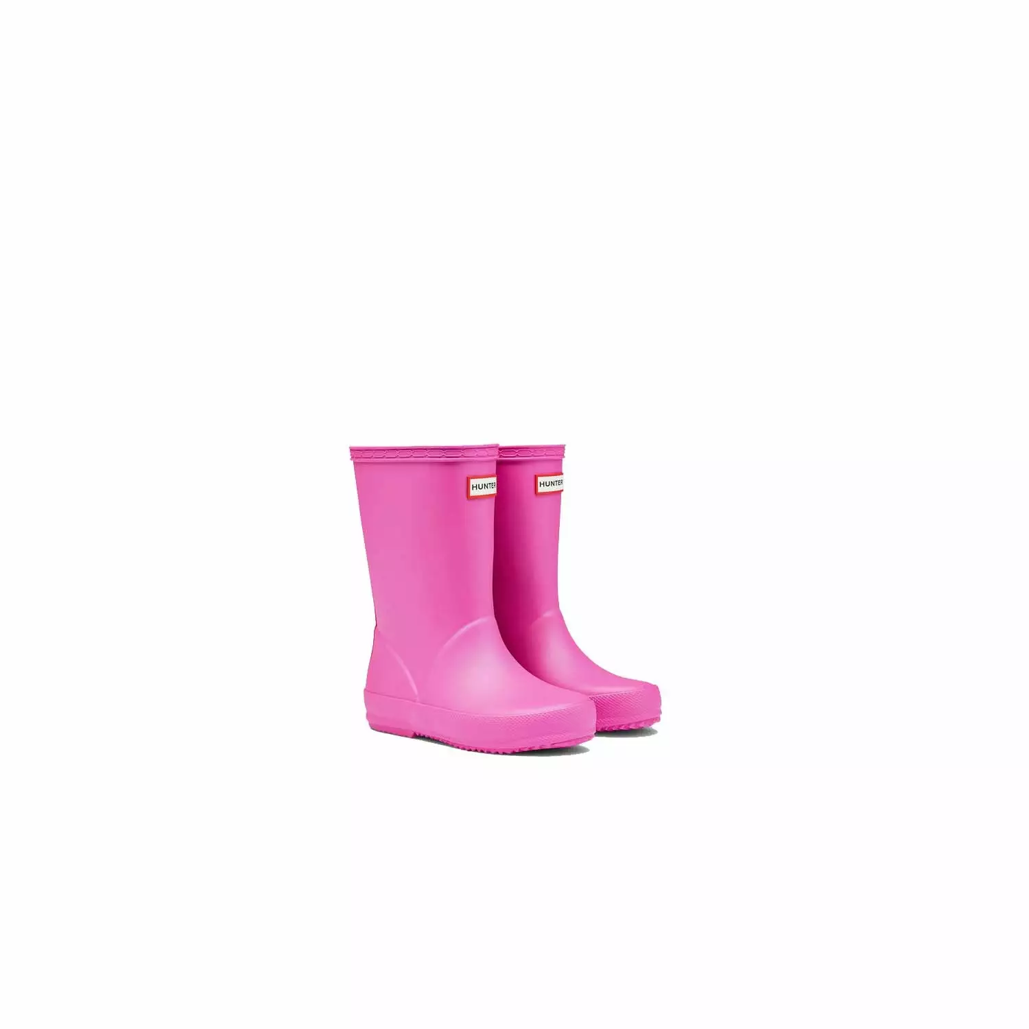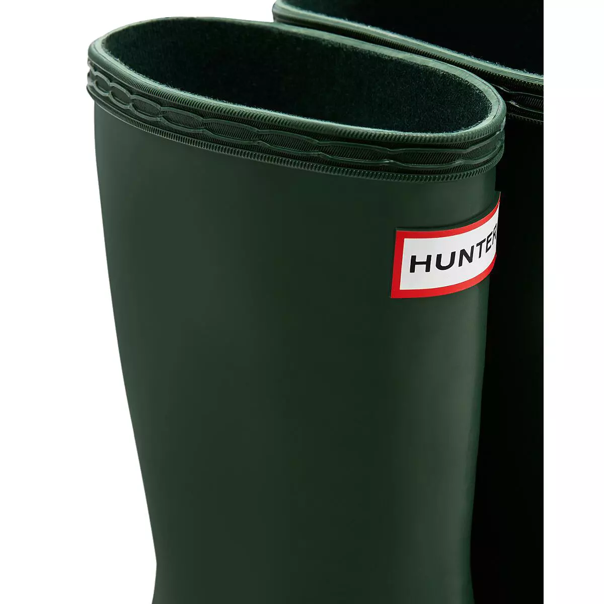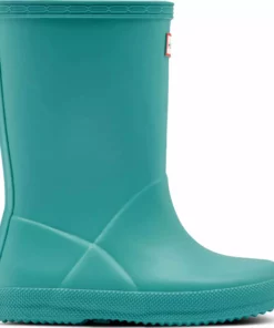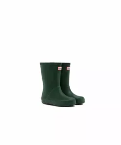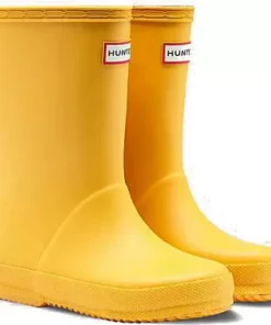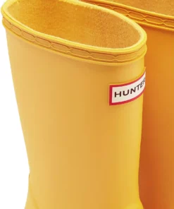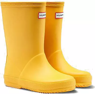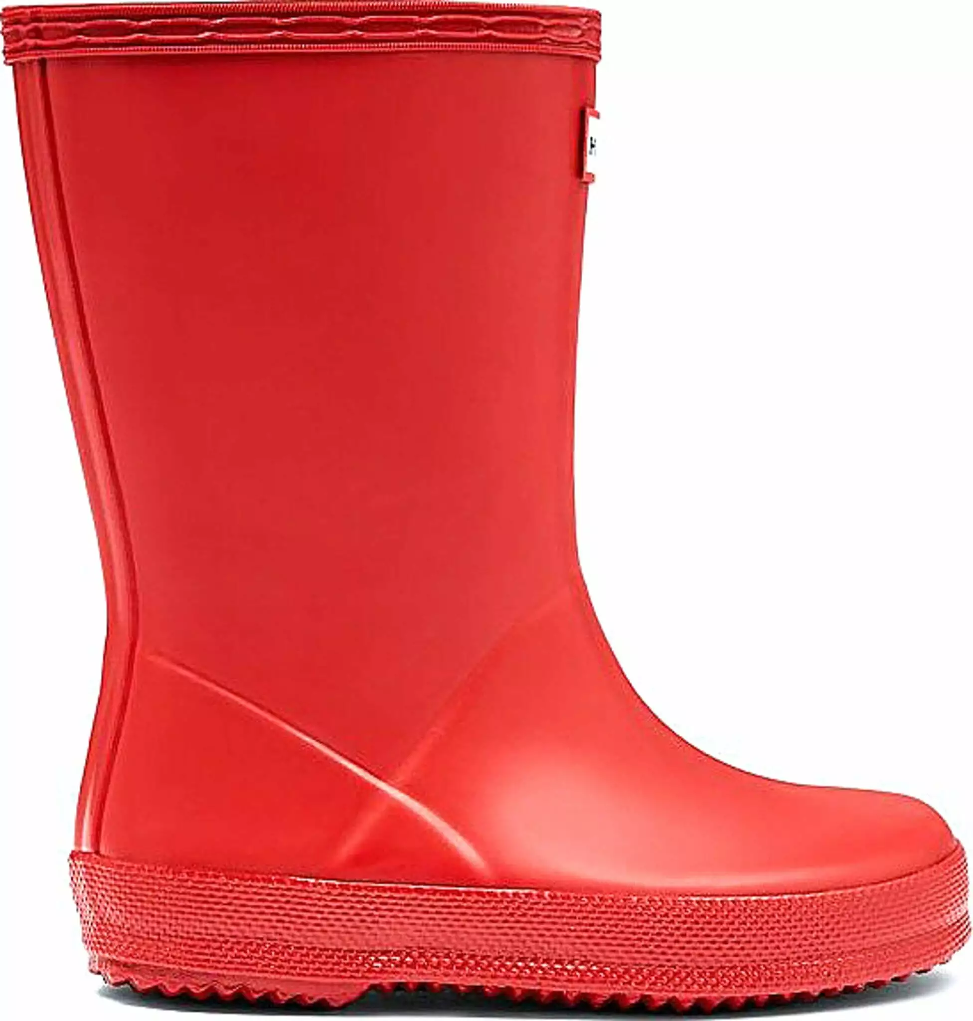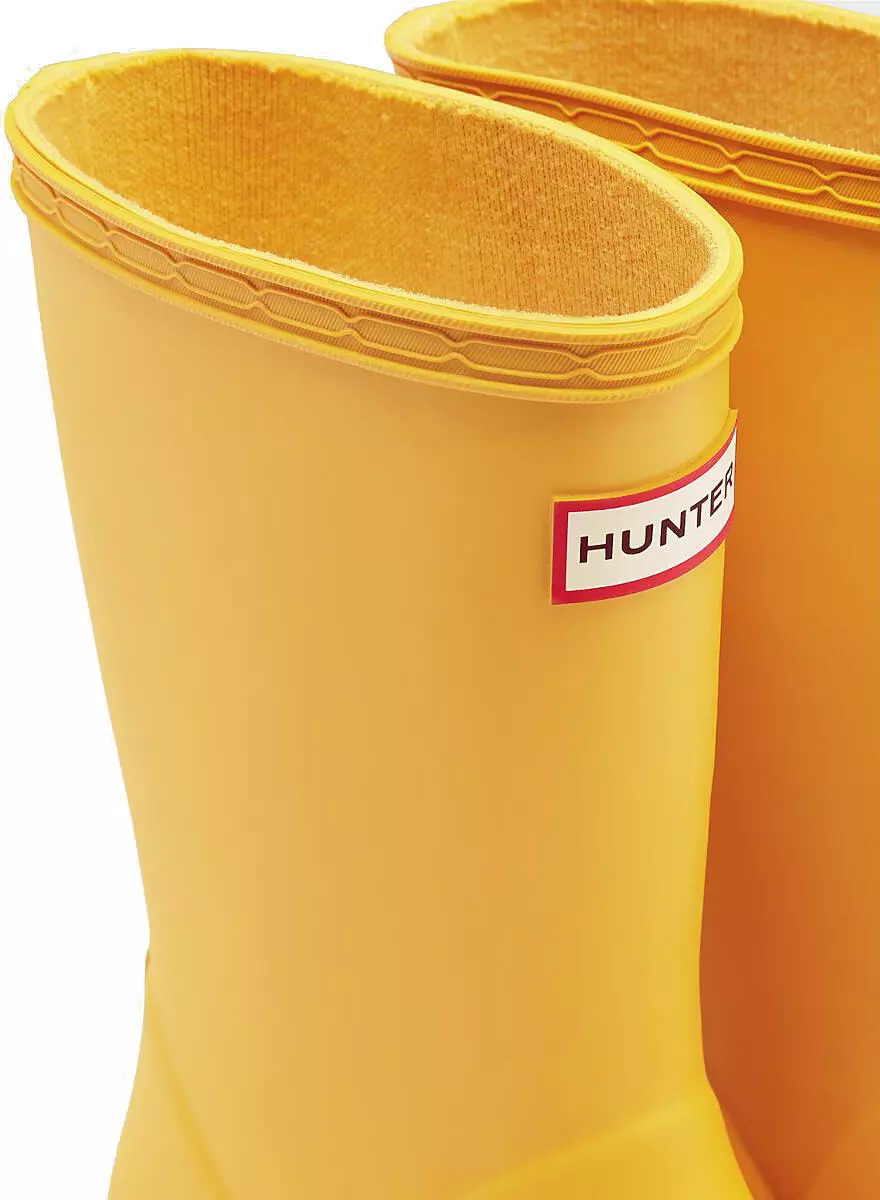 The Original First Classic Rain Boots from the Hunter Kids collection are specialized designs for waterproof protection and growing feet. They are made from handcrafted natural rubber and feature a rounder foot to ensure comfort when walking. The upper leg is wider to allow for quick changes and better freedom of movement.
