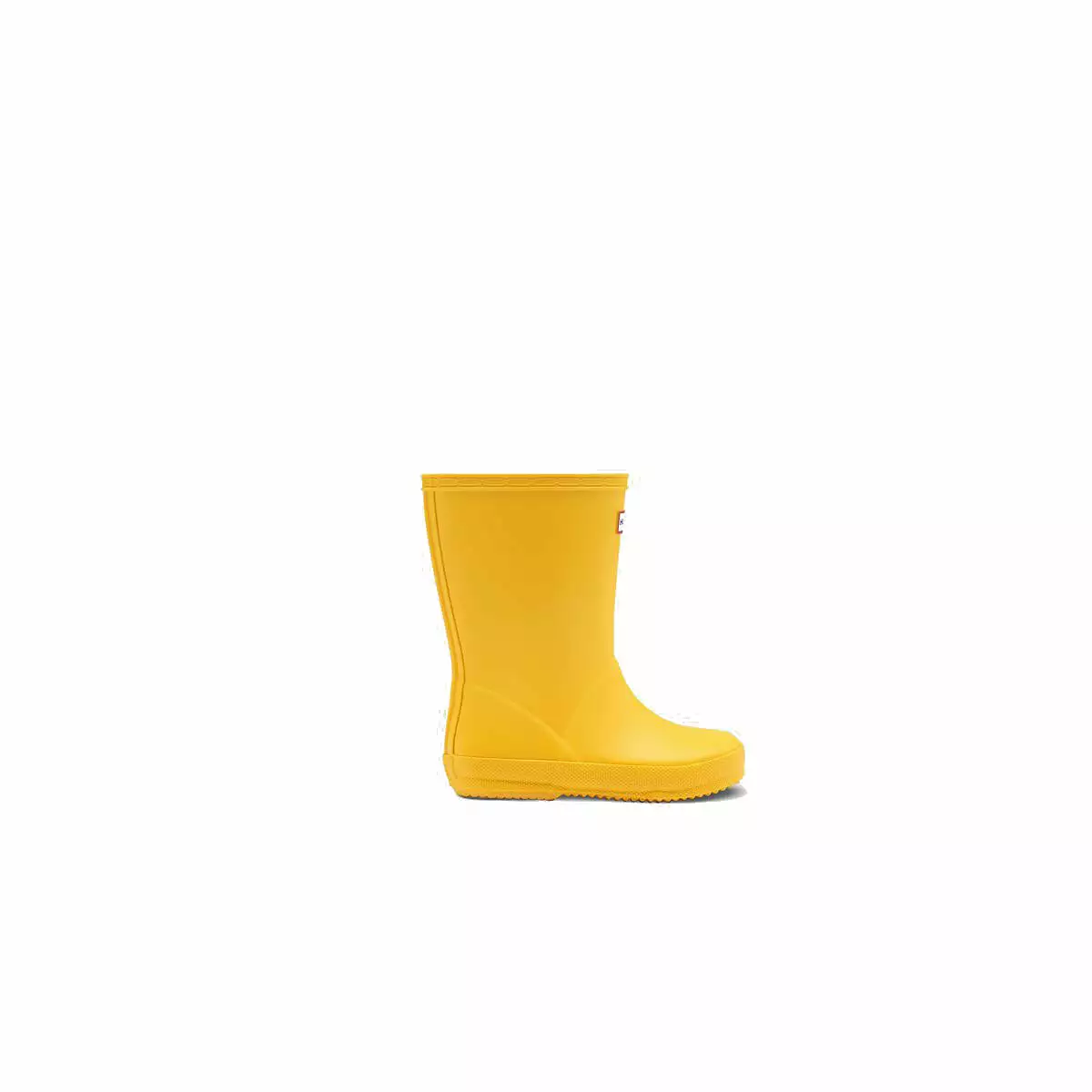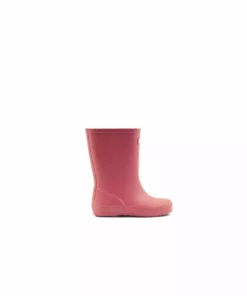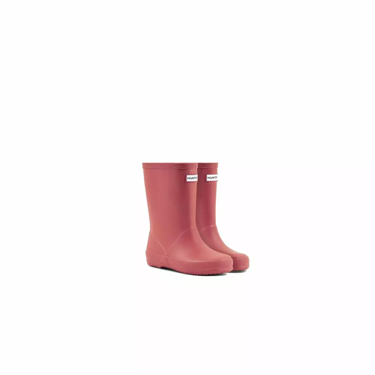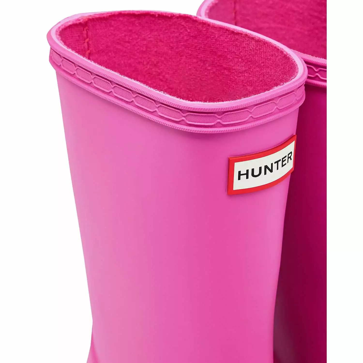 The Original First Classic Rain Boots from the Hunter Kids collection are specialized designs for waterproof protection and growing feet. They are made from handcrafted natural rubber and feature a rounder foot to ensure comfort when walking. The upper leg is wider to allow for quick changes and better freedom of movement.