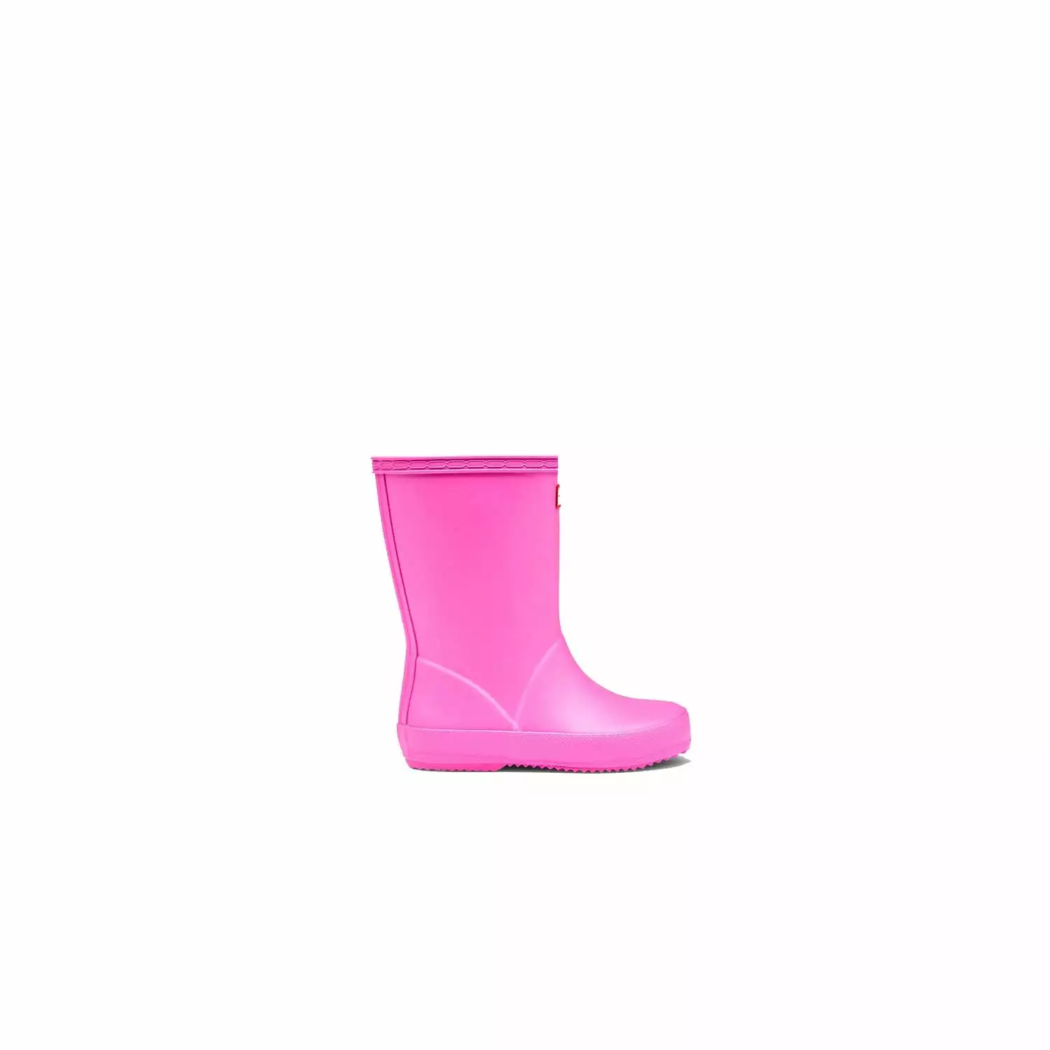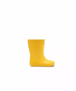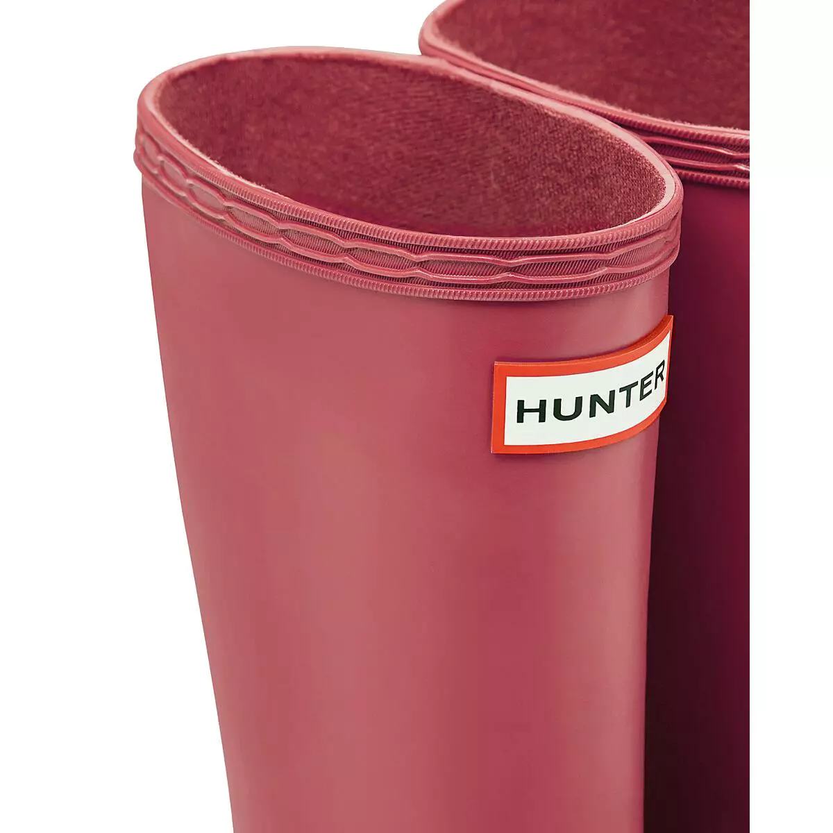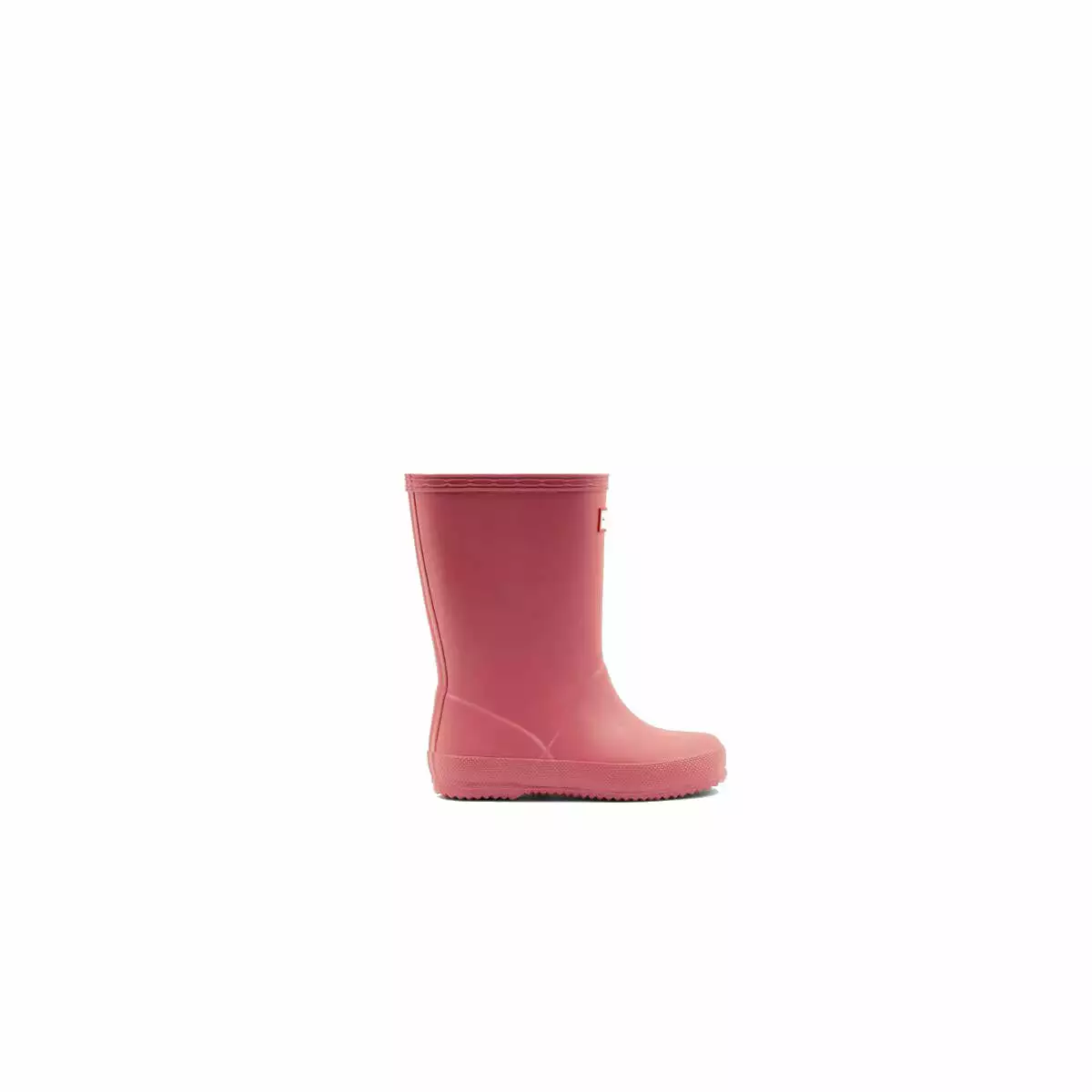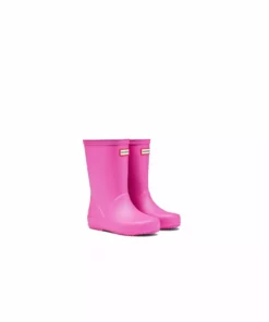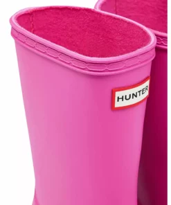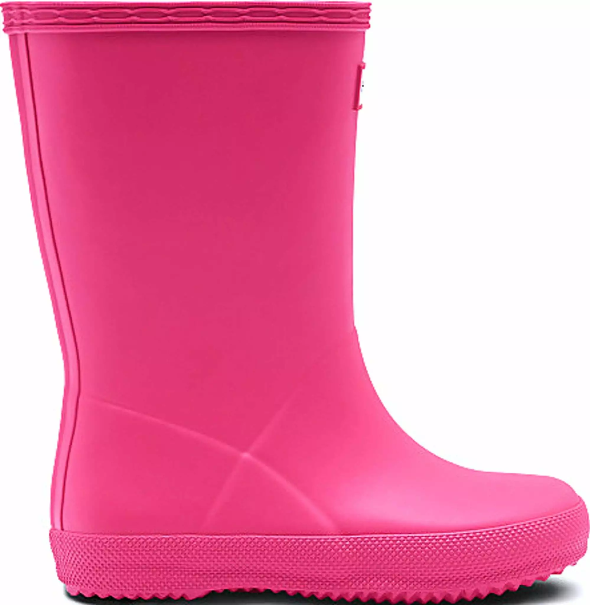The Original First Classic Rain Boots from the Hunter Kids collection are specialized designs for waterproof protection and growing feet. They are made from handcrafted natural rubber and feature a rounder foot to ensure comfort when walking. The upper leg is wider to allow for quick changes and better freedom of movement.
