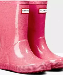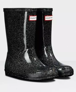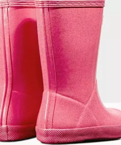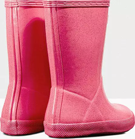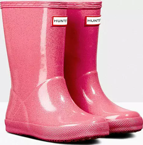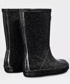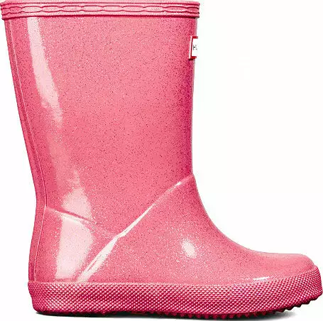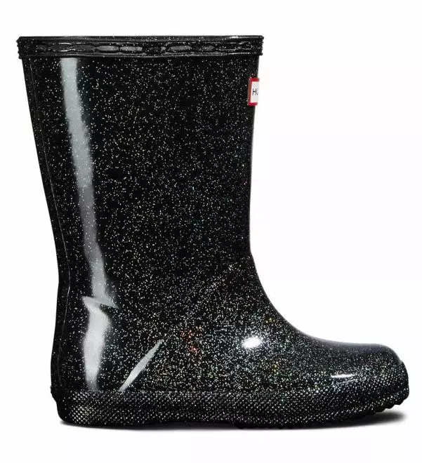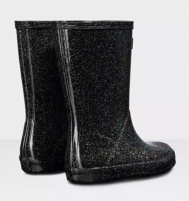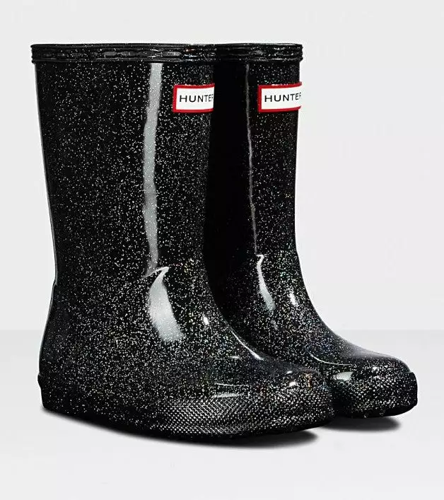 Adding a touch of sparkle to rainy days this glittery kids rain boot is handcrafted using a unique process exclusive to Hunter. Finished in a vivid blue shade with a shimmering glitter layer, the Kids First Starcloud Boot is perfect for puddle splashing. A flat sole and rounded toe gives little feet room to move and the soft cotton lining ensures complete comfort for every adventure.