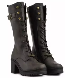 A striking heeled mid-calf boot to see in the new season. Choose vegan this winter with our style Oolong. Oolong combines a traditional lace-up style with an inside zip for easy on and off and is made in a vegan-certified factory. Oh, did we mention this style is PETA approved too.Â
