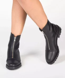 These modern boots feature a statement zipper fastening on the front of the shaft, made with sleek silver metal (nickel-free). They also have exposed sewn edges to bring a lasting and defined style and reinforce the toe cap and heel area, making them a more sturdy yet flexible boot. The upper, the lining and the insole are hypoallergenic and free from dangerous environmental toxins. The boots are breathable, able to avoid foot sweat and suffocation, and are antibacterial and antimicrobial, which helps to prevent the development of odours. They feature a moisture-wicking footbed padded with EVA to provide arch support, and along with the lining attributes, can be considered a flexible model which will prevent blisters.