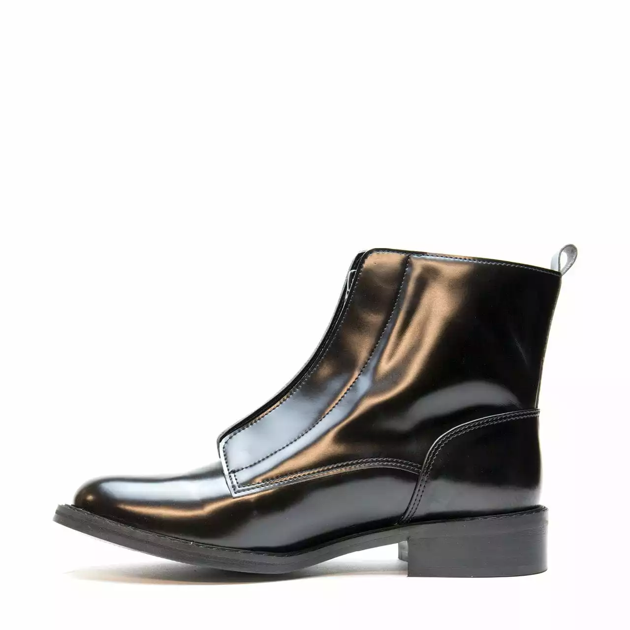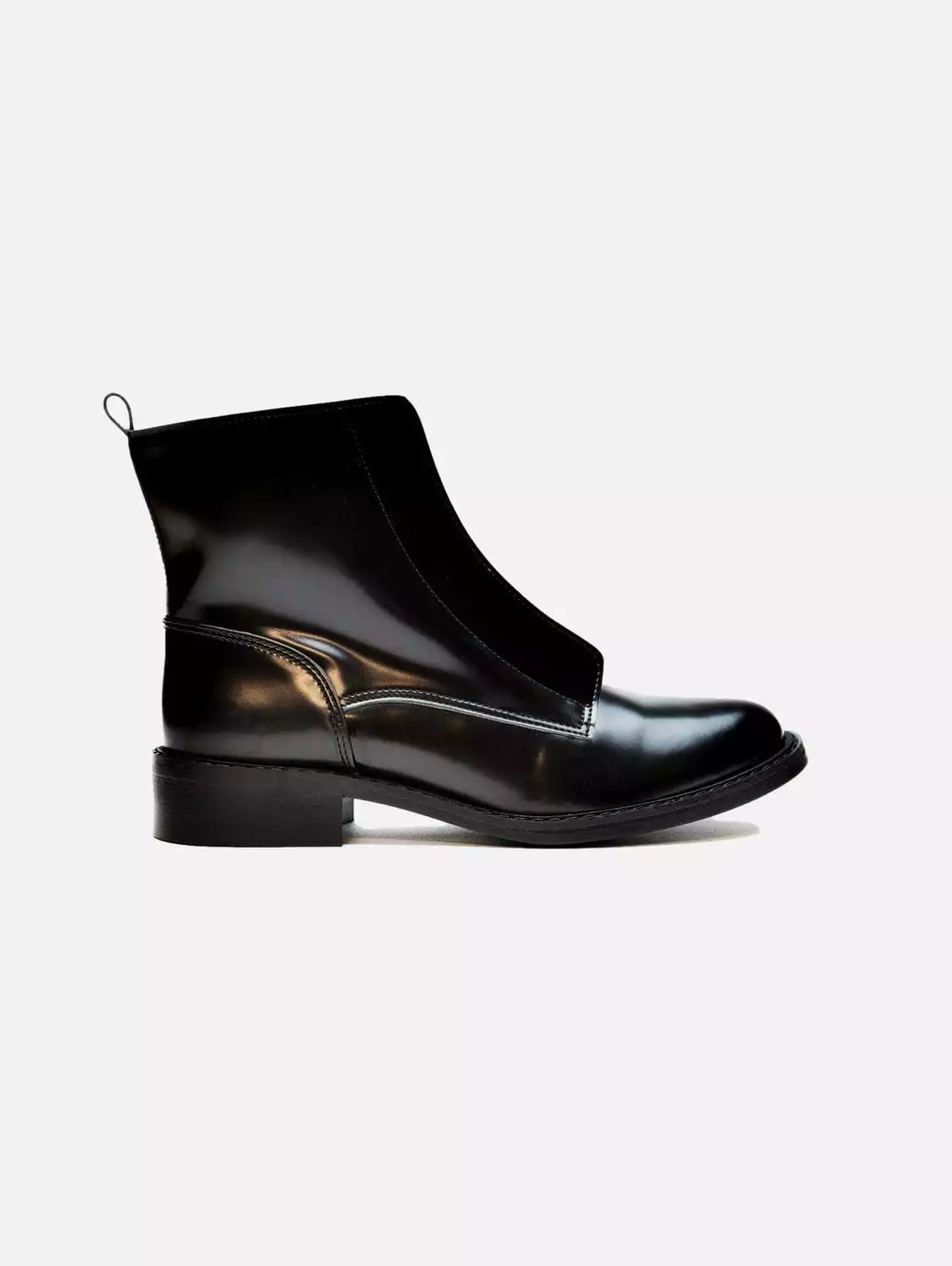 Vegan low-barrel boots with a front zipper, made from ecological and water resistant microfibre, OEKO-TEX certified.Â